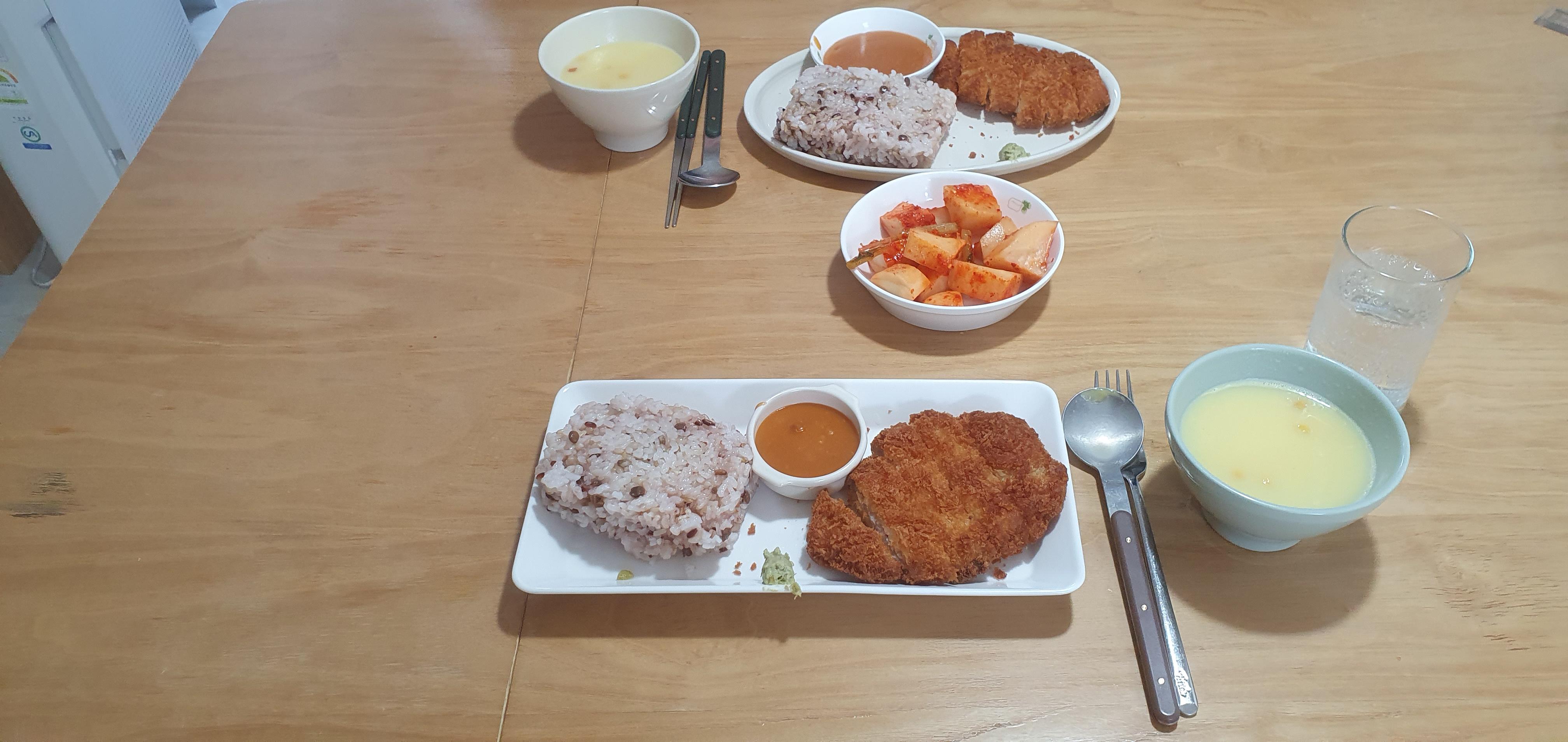 바람이 선선하게 부는 가을의 일요일이었다. 아내는 아기에게 정해진 시간에 맞춰 모유 수유를 했고, 수유 시간을 종이에 꼼꼼히 기록했다. 아침 수유를 마친 아기는 투정 한 번 부리지 않고 곤히 잠들었다. 우리도 침대에서 조금 늦장을 부리다 배가 고파 밥을 해 먹기로 했다. 뭘 먹을까 고민하다가 냉동 돈가스를 꺼냈다.